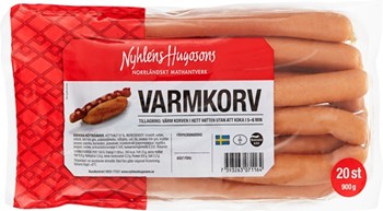 Griskött, vatten, nötkött, fett från gris, potatisstärkelse, nöthjärta, salt, lök, bindväv från gris, kryddor (peppar, paprika, koriander), jästextrakt, kryddextrakt (cayennepeppar, ingefära, peppar), socker, antioxidationsmedel E300, konserveringsmedel E250. Rökarom. Svenska köttråvaror. Kötthalt: 51%